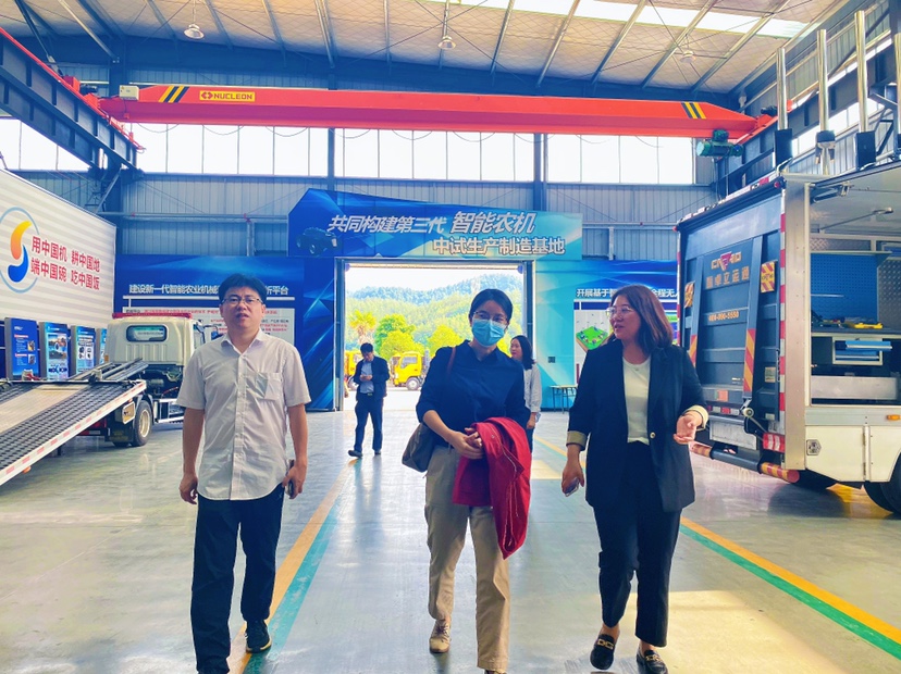 我司黨支部書(shū)記趙丹、常務(wù)副總鄭笑陽(yáng)對(duì)調(diào)研組一行領(lǐng)導(dǎo)表示熱烈歡迎,隨后參觀了智能裝備生產(chǎn)車間、整車生產(chǎn)線,鄭總介紹了生產(chǎn)經(jīng)營(yíng)、發(fā)展情況、市場(chǎng)銷售等情況。